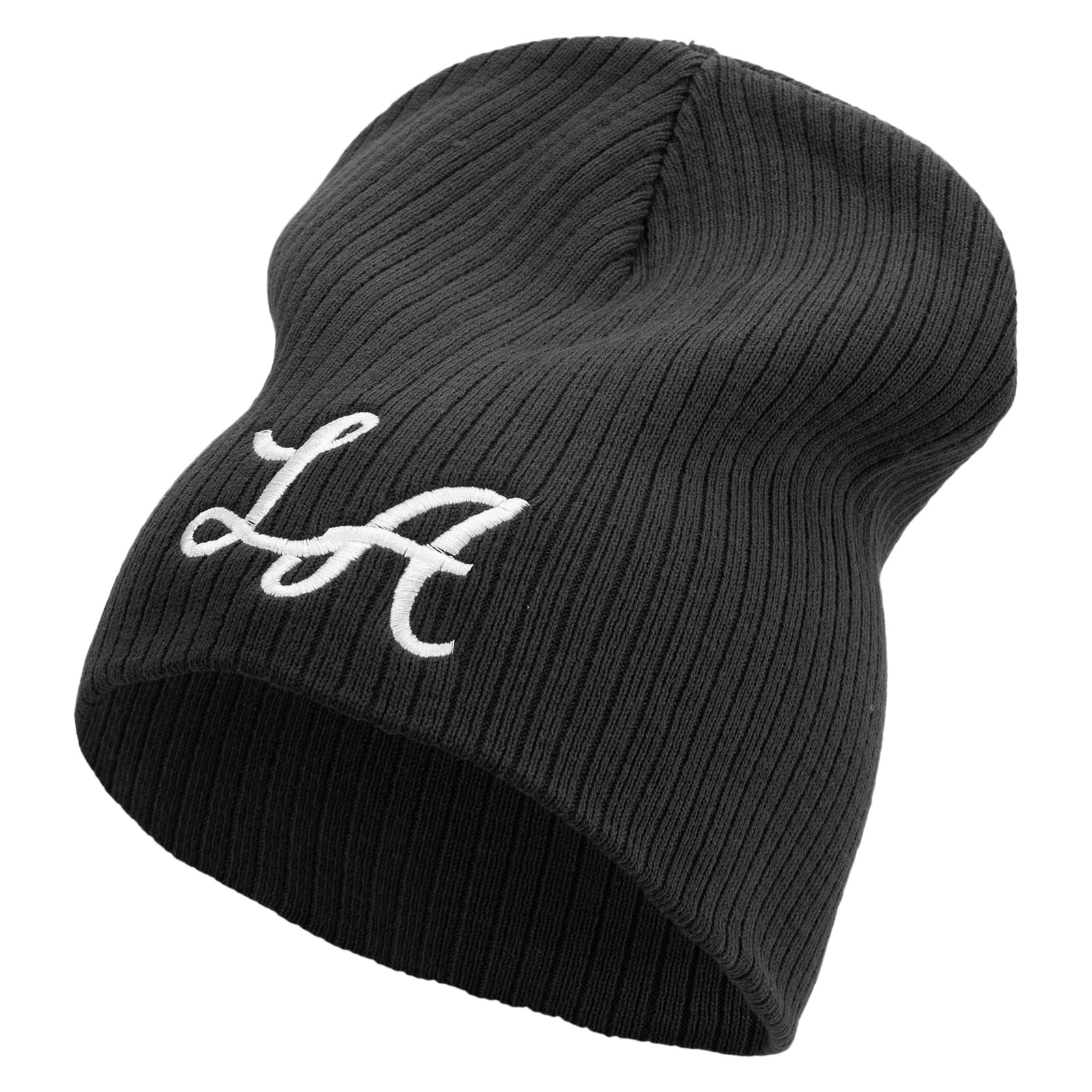 Design & Style, A trendy and comfortable short beanie, perfect for adding an urban touch with the bold "Graffiti LA" embroidered design