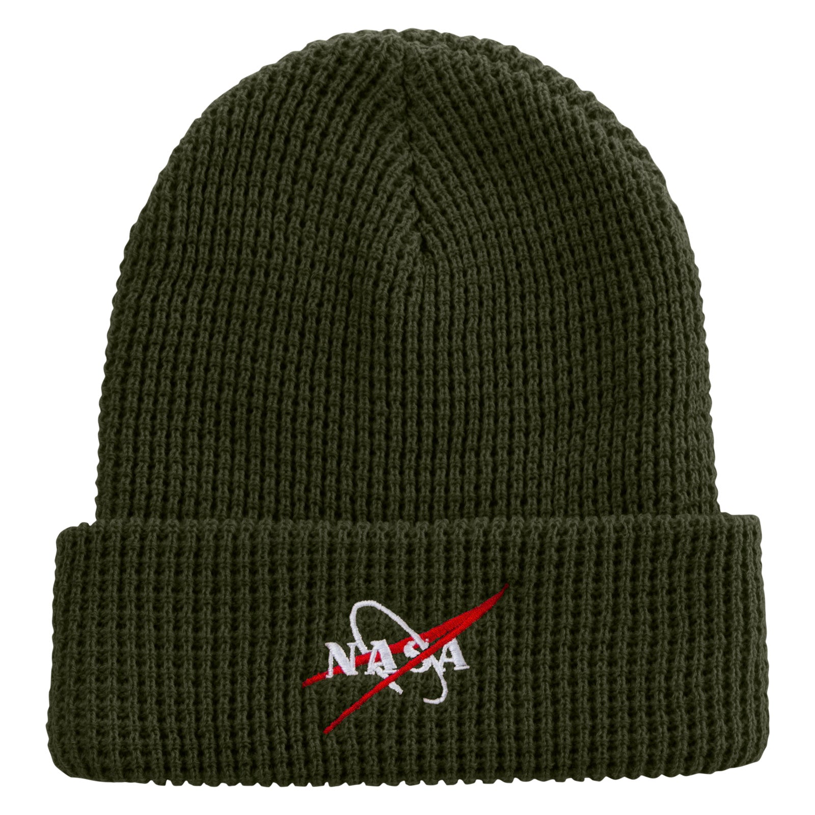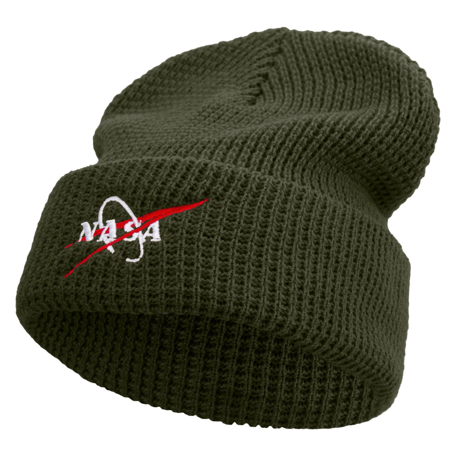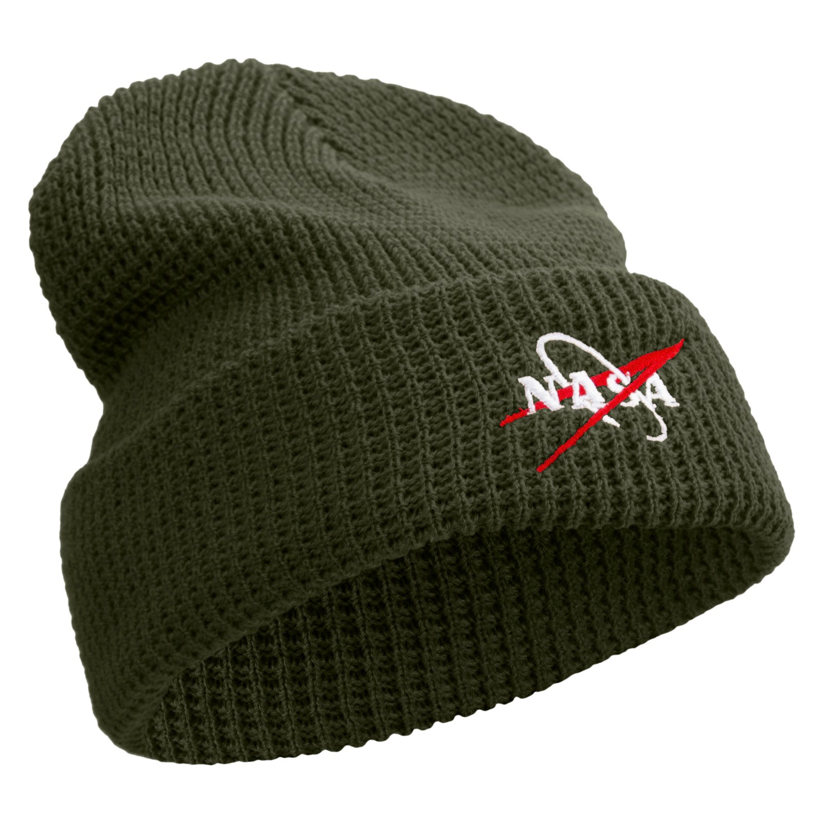 Made in USA NASA Logo Symbol Embroidered Big Stretch Waffle Stitch Cuff Beanie