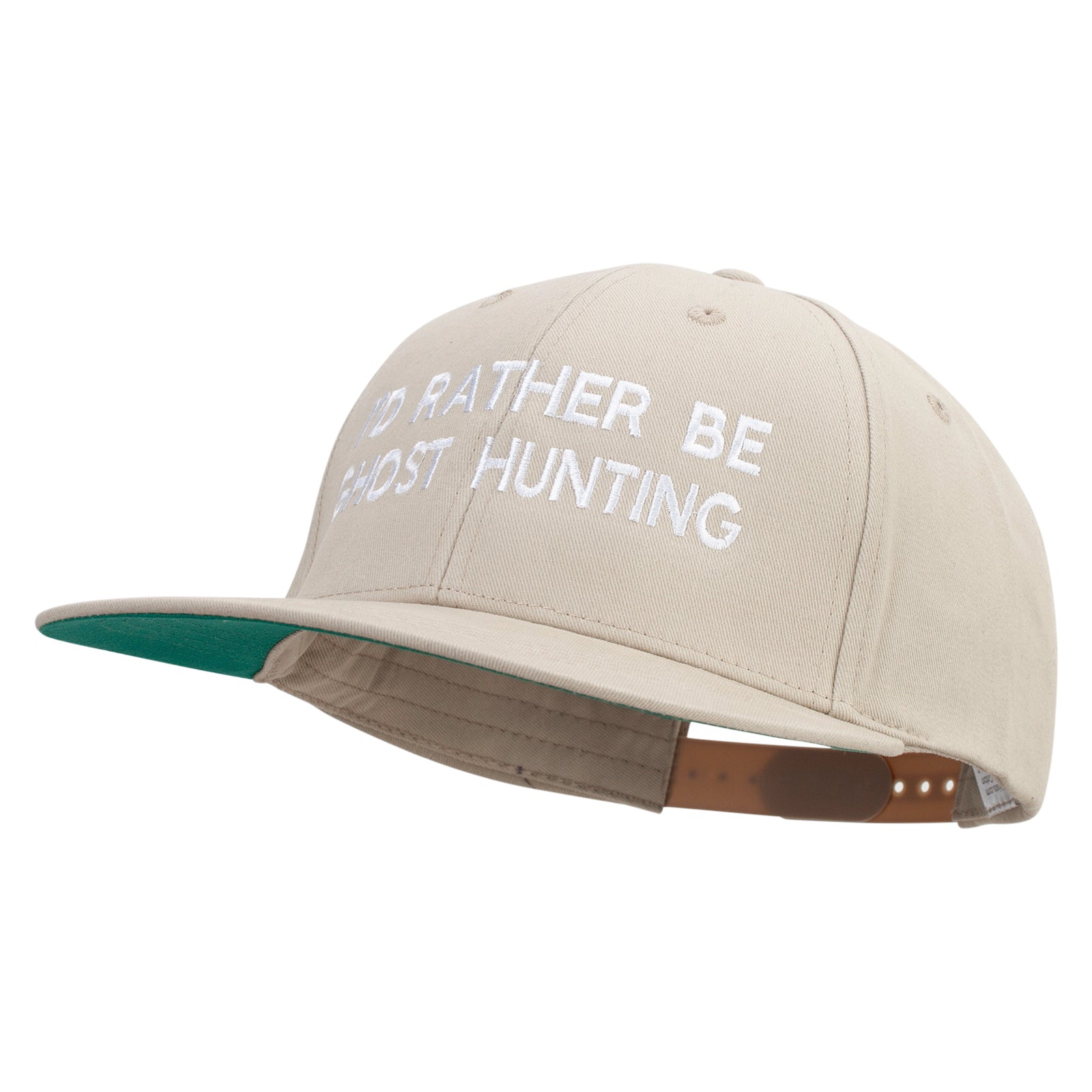 I'd Rather Be Ghost Hunting Embroidered Brushed Cotton Twill High Profile Extra Size Cap - Khaki XL-3XL