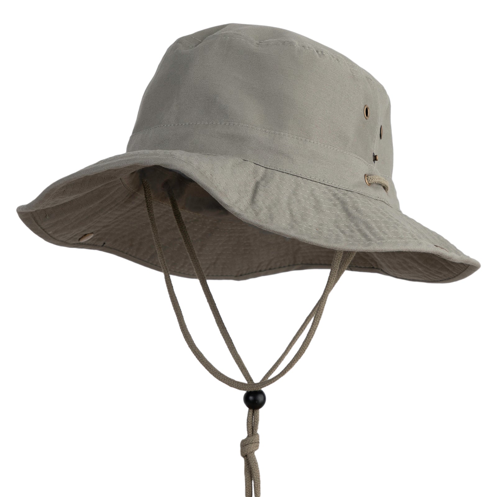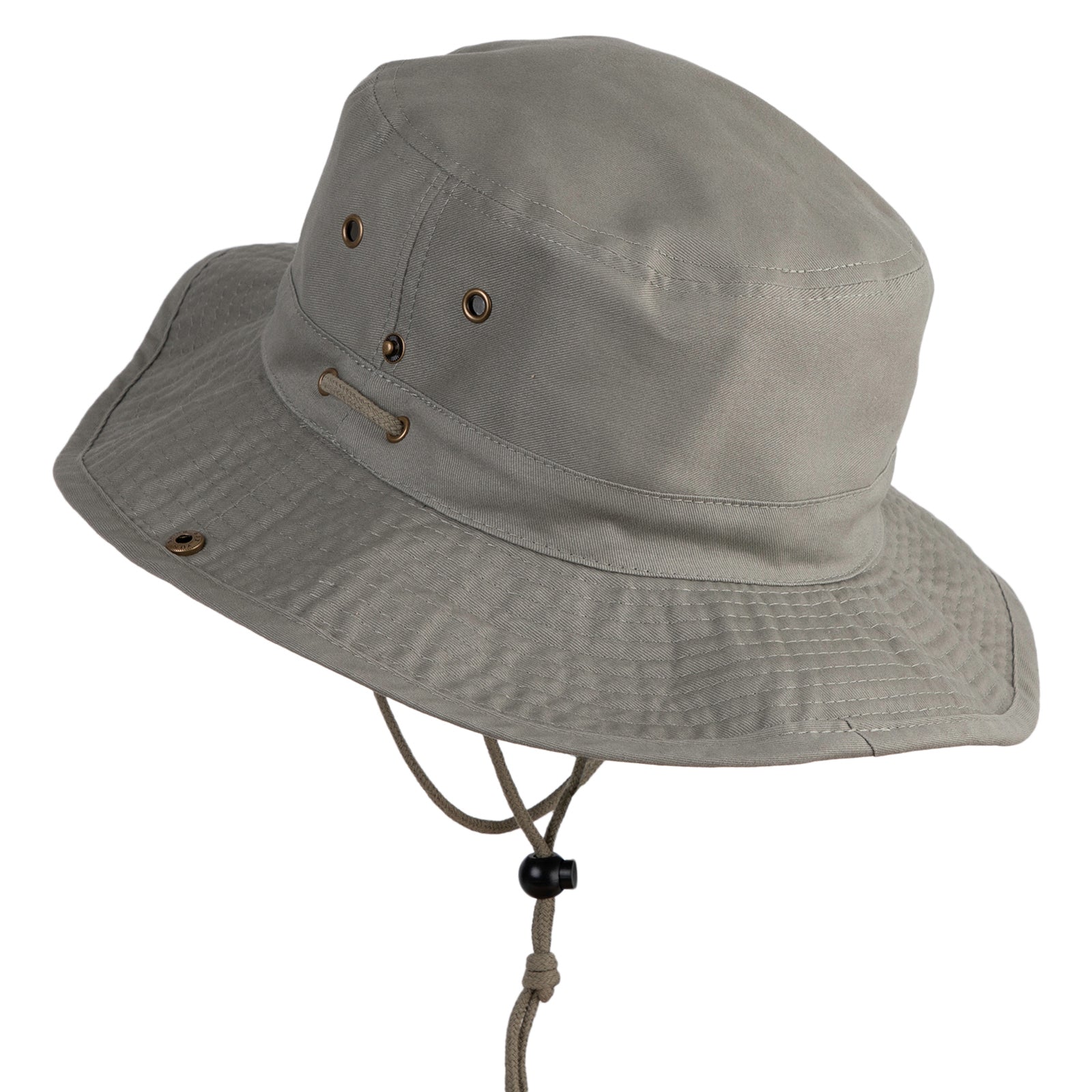 Chin cord, side snap buttons and 3 1/2 inches deep crown.